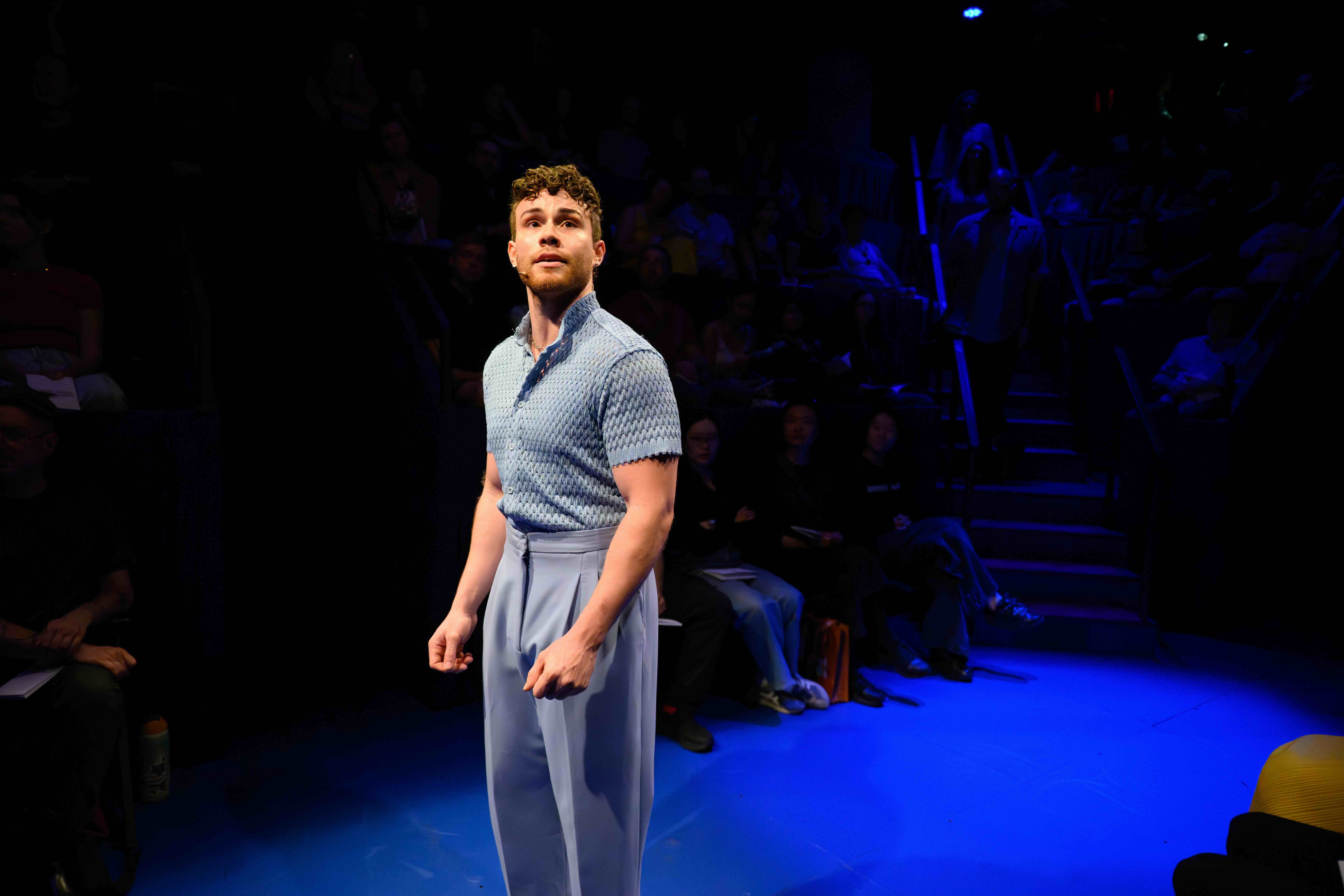 The space itself begins to reorganize you. Because the singers are dispersed across platforms and aisles, sound doesn’t arrive head-on—it circulates. A phrase might bloom from a trio perched high on a riser and then be answered by a single voice emerging a few feet behind you, the harmony drifting through the room like a change in weather. Your attention gathers automatically, not only because the show demands it, but because the room keeps reshaping what you’re able to hear—pulling your focus toward whatever voice or vibration rises next. Every moment arrives layered: joy with pain, aspiration with grief, the life you’ve lived pressed against the life you still long for. Time doesn’t simply pass—it begins pooling, widening into something briefly, miraculously inhabitable. It’s the closest I’ve come, in a theatre, to feeling time widen rather than rush.